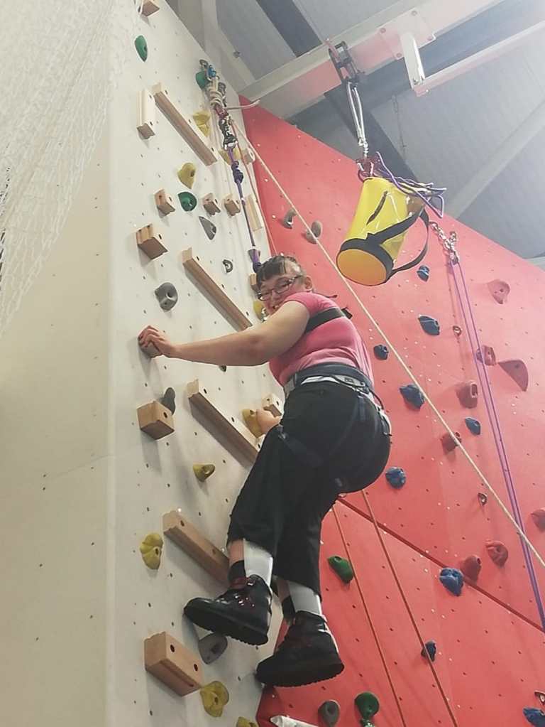“ X climbed today and it was a wonderful experience. Tigs and the team were fantastic, so kind, made me cry. It makes such a difference to work with people who understand disability. I also cried watching X climb as it’s been so long since she has been able to. Tigs taught her to climb using less energy, which is perfect! I’m so happy and very grateful to you for letting us know about the group. Honestly it was the most uplifting and cherished hour we’ve had in years. We’ve had so many battles, with diagnosis, rubbish doctors, education, DWP etc, they make it so hard for us but Tigs, Sophie and Matthew completely neutralised the years of hurt and struggle. So simple and true of heart