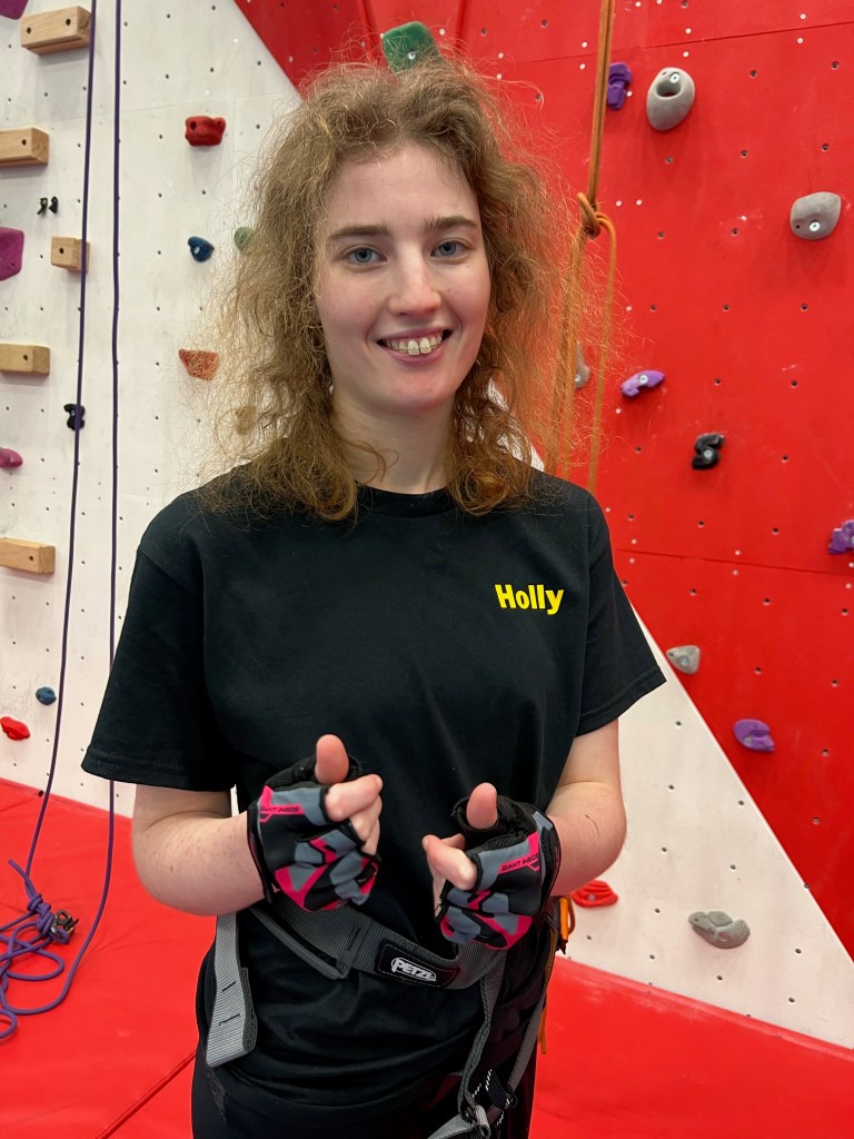 She always looks forward to coming to climbing , super lovely group , everyone so professional , kind and super patient . Thanks everyone so much.” – Holly